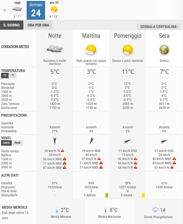 La temperatura massima registrata pare che sarà di 13°C, la minima di 4°C.