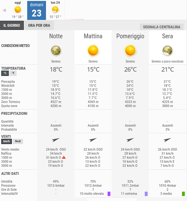 Secondo gli esperti di 3bmeteo, domani, Domenica 23 Giugno, avremo cieli in prevalenza poco o parzialmente nuvolosi per l’intera giornata, non sono previste piogge.