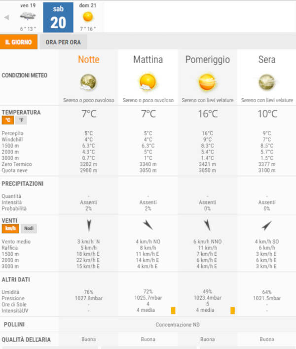 La temperatura massima registrata pare che sarà di 16°C, la minima di 7°C.