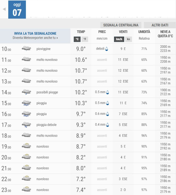 La temperatura massima registrata pare che sarà di 11°C, la minima di 7°C.