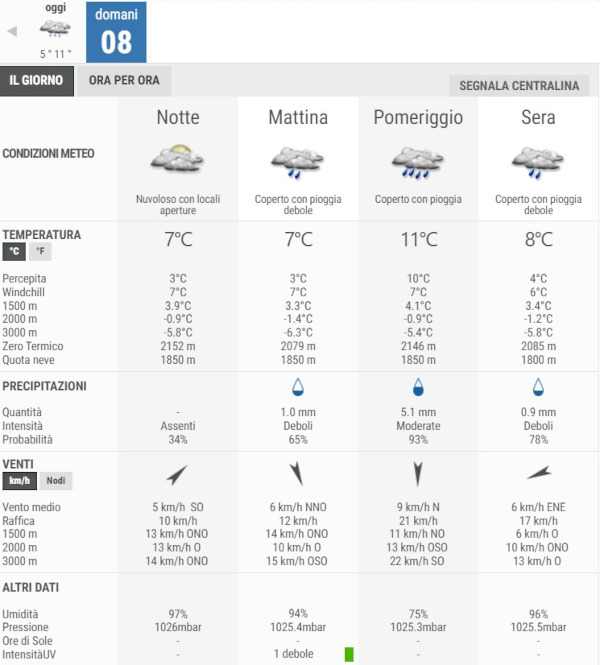 La temperatura massima registrata pare che sarà di 11°C, la minima di 5°C.