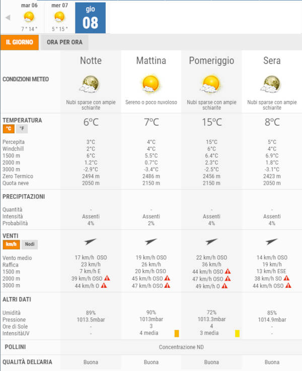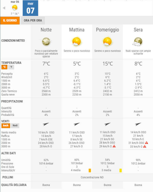 La temperatura massima registrata pare che sarà di 15°C, la minima di 6°C.