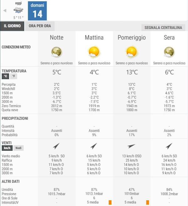 La temperatura massima registrata pare che sarà di 13°C, la minima di 4°C.