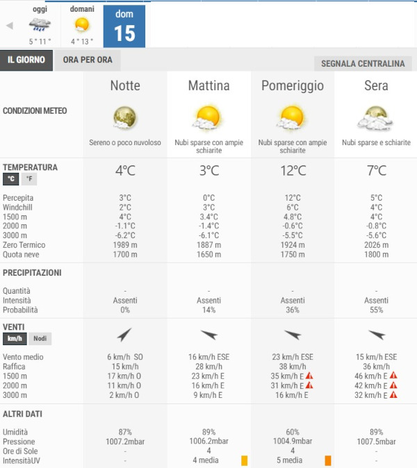 La temperatura massima registrata pare che sarà di 12°C, la minima di 3°C.