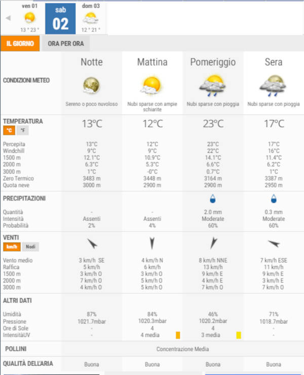 Secondo gli esperti di 3bmeteo, domani, Sabato 2 Ottobre, avremo nubi sparse e schiarite il mattino, nubi sparse con pioggia il pomeriggio e la sera.