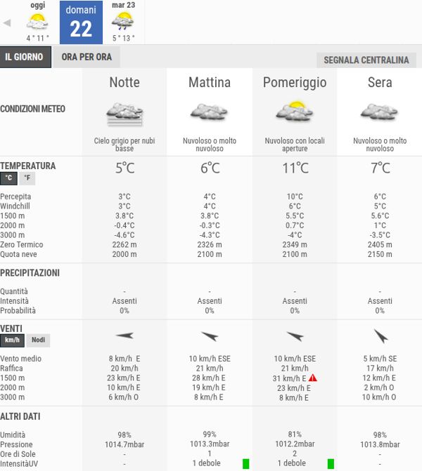 La temperatura massima registrata pare che sarà di 11°C, la minima di 5°C.