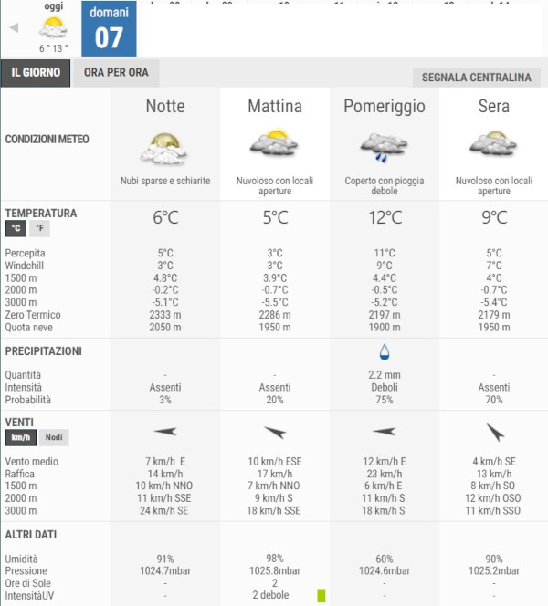 La temperatura massima registrata pare che sarà di 12°C, la minima di 5°C.