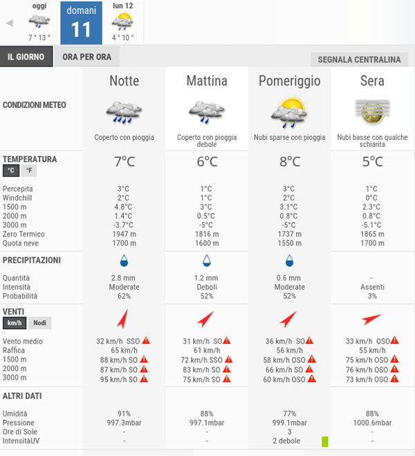 La temperatura massima registrata pare che sarà di 10°C, la minima di 5°C.