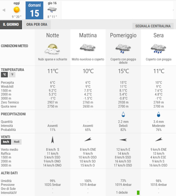 La temperatura massima registrata pare che sarà di 15°C, la minima di 10°C.
