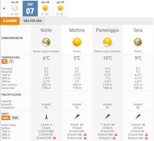 La temperatura massima registrata sarà di 15°C, la minima di 5°C.