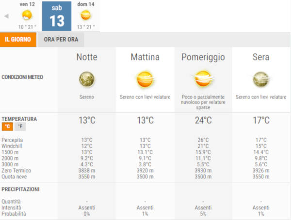 La temperatura massima registrata sarà di 24°C, la minima di 13°C.