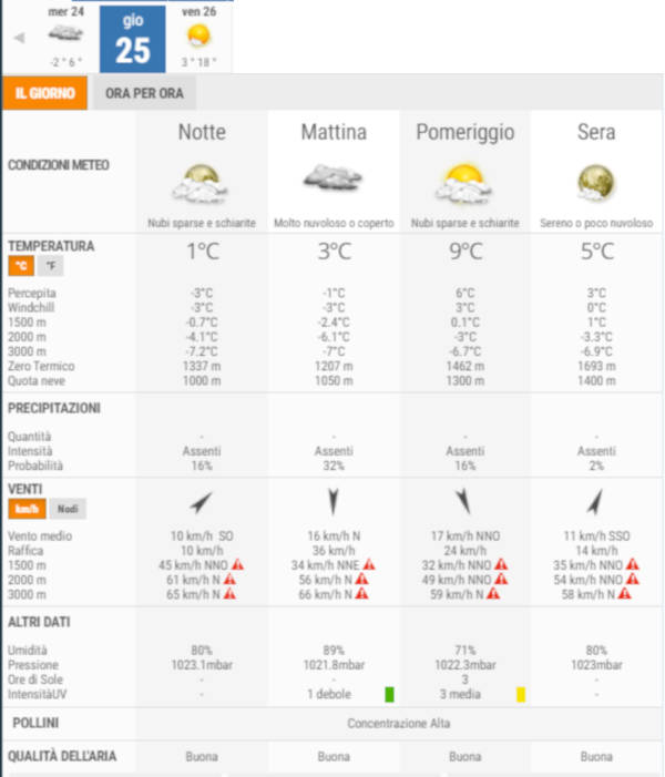 La temperatura massima registrata pare che sarà di 9°C, la minima di 1°C.