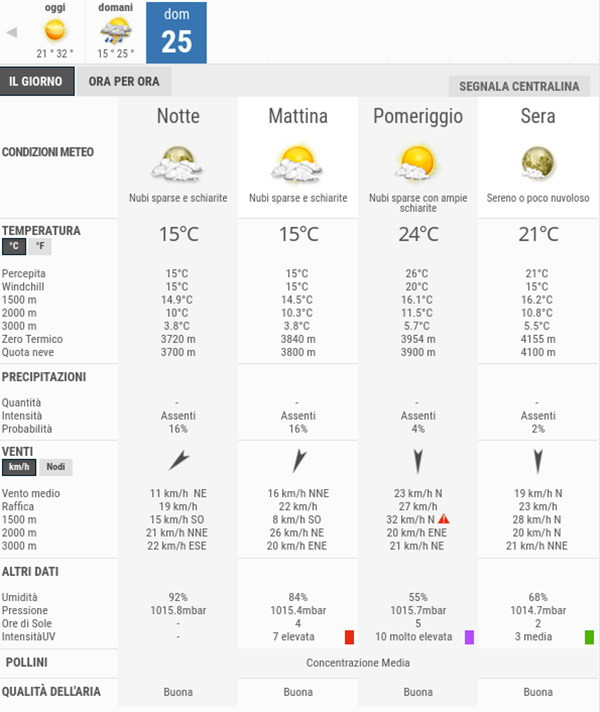 La temperatura massima registrata pare che sarà di 25°C, la minima di 16°C.