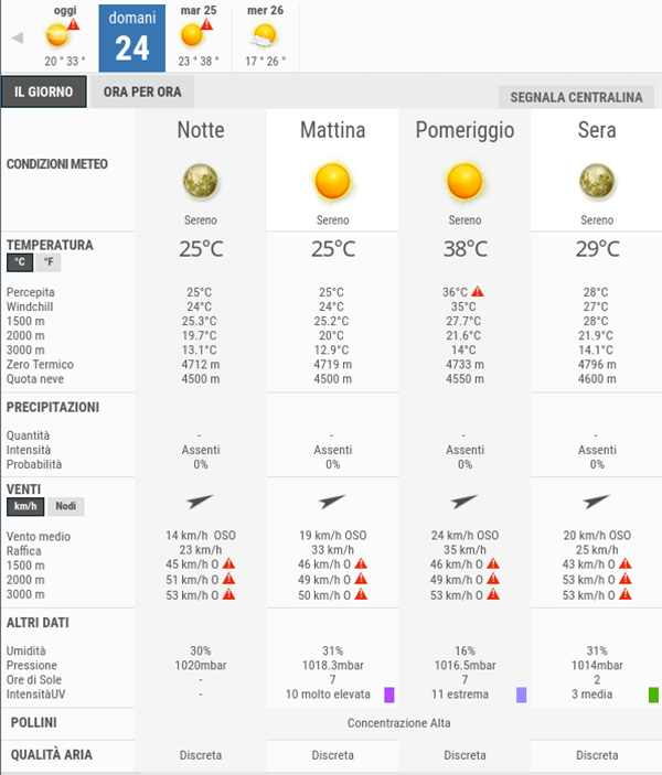 Secondo gli esperti di 3bmeteo, domani, Lunedì 24 Luglio, avremo bel tempo con sole splendente per l’intera giornata, non sono previste piogge.