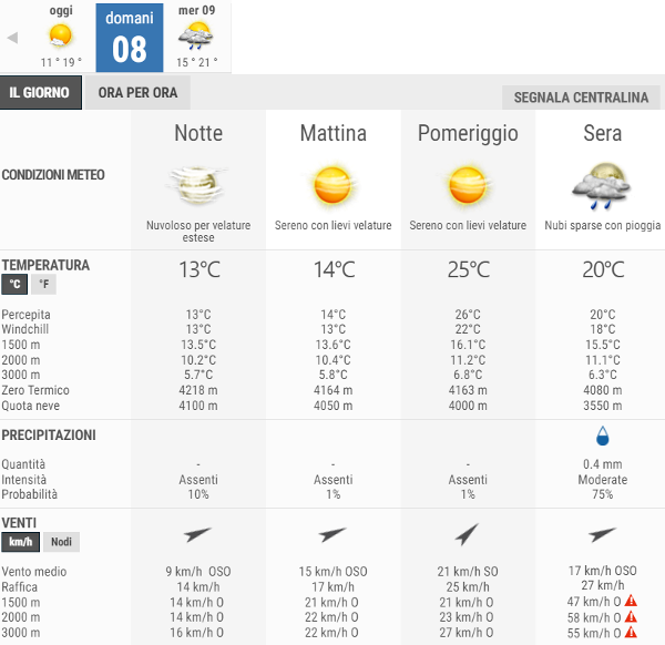 In attesa di ulteriori aggiornamenti, ecco le previsioni per la giornata di domani.