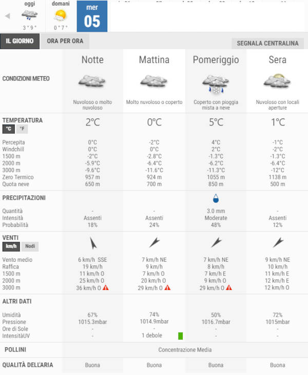 La temperatura massima registrata pare che sarà di 7°C, la minima di 1°C.