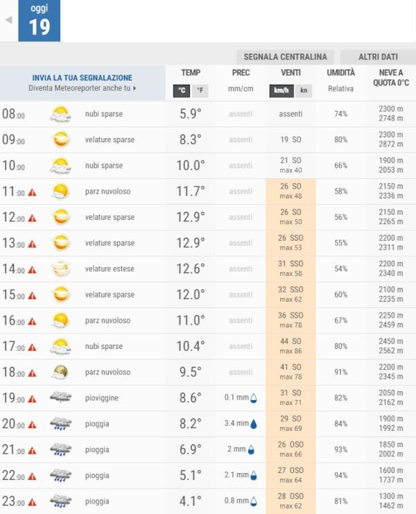 La temperatura massima registrata pare che sarà di 8°C, la minima di 2°C.