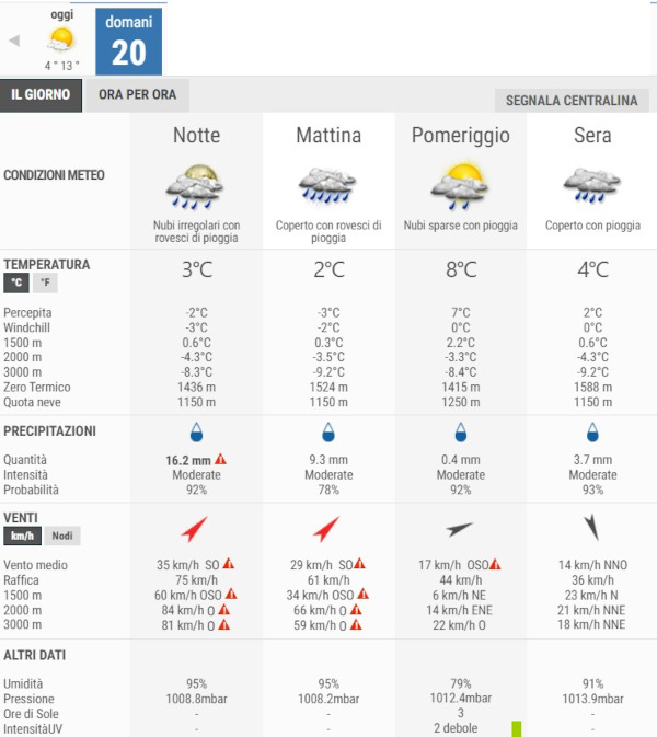 La temperatura massima registrata pare che sarà di 13°C, la minima di 4°C.