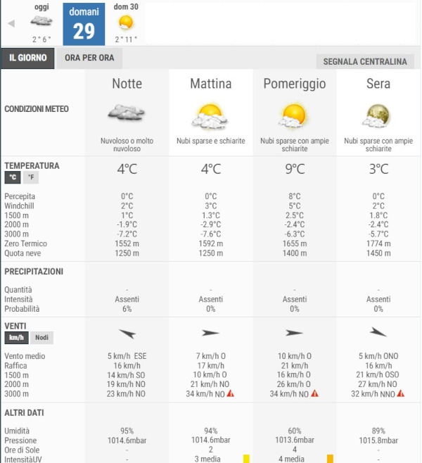 Secondo gli esperti di 3bmeteo domani, Sabato 29 Novembre avremo una giornata in prevalenza poco nuvolosa, salvo presenza di nubi sparse al mattino, non sono previste piogge.