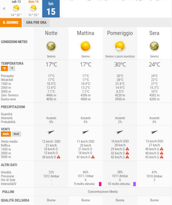 Lunedì 15 Agosto, invece, avremo cieli in prevalenza sereni o poco nuvolosi per l’intera giornata, non sono previste piogge.