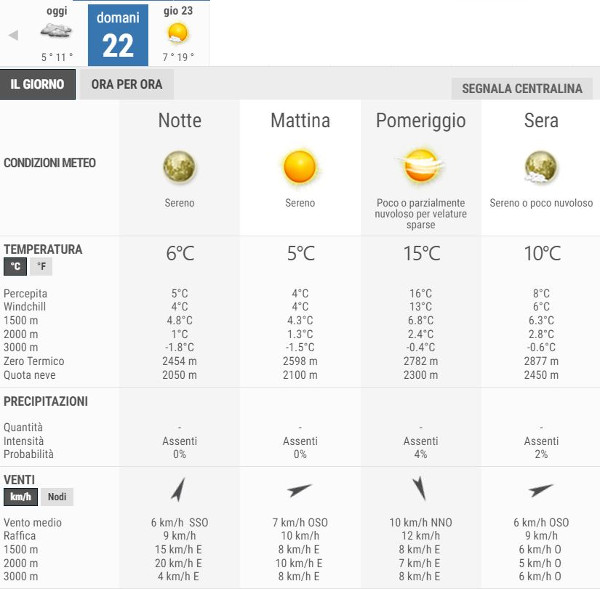 La temperatura massima registrata pare che sarà di 15°C, la minima di 5°C.