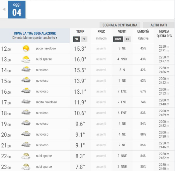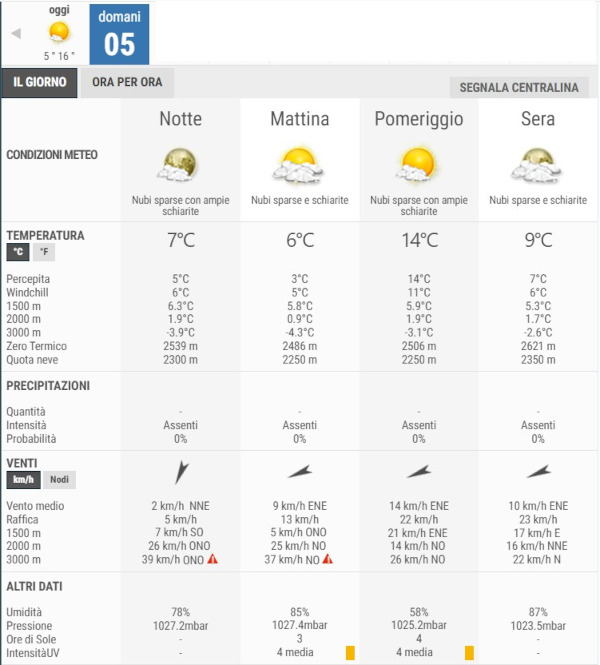 La temperatura massima registrata pare che sarà di 16°C, la minima di 5°C.