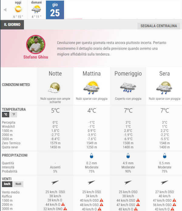 La temperatura massima registrata pare che sarà di 7°C, la minima di 4°C.