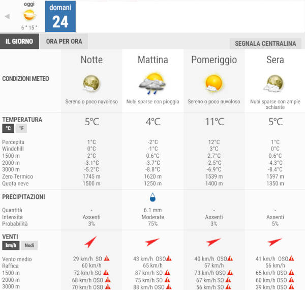 Secondo gli esperti di 3bmeteo, domani, Mercoledì 24 Aprile, avremo cieli molto nuvolosi al mattino con deboli piogge.