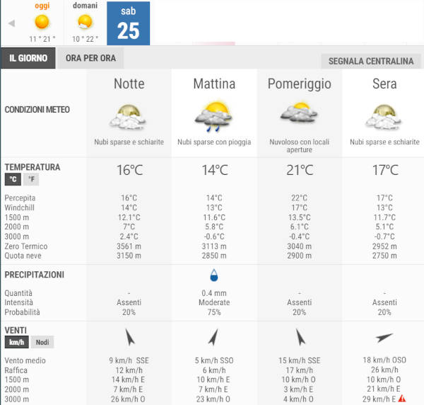 La temperatura massima registrata pare che sarà di 21°C, la minima di 14°C.