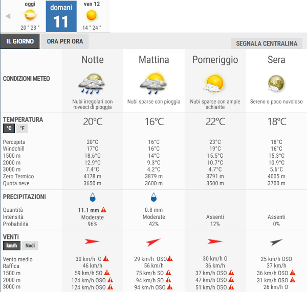 Invece, venerdì 12 Luglio sole splendente per l’intera giornata, non sono previste piogge.
