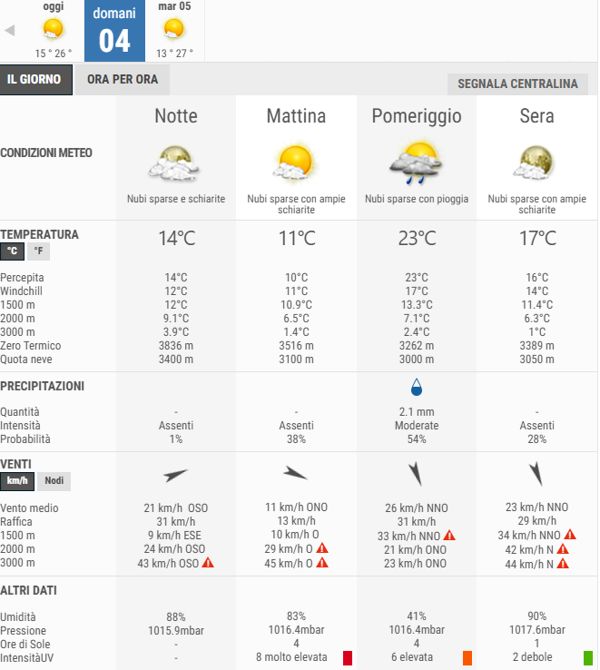 Secondo gli esperti di 3bmeteo domani, Lunedì 4 Agosto avremo cieli in prevalenza poco nuvolosi, salvo addensamenti talora compatti nelle ore centrali della giornata con associate piogge.