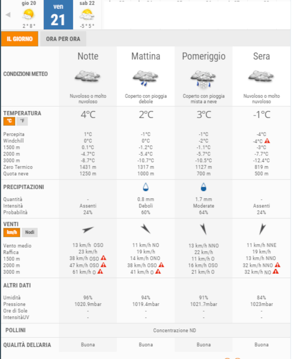 La temperatura massima registrata pare che sarà di 12°C, la minima di -5°C.