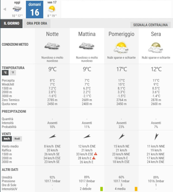 La temperatura massima registrata pare che sarà di 17°C, la minima di 9°C.