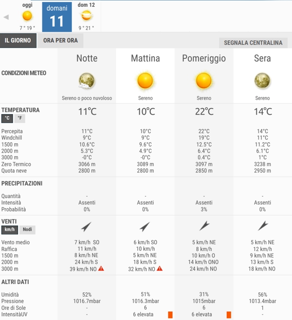 La temperatura massima registrata pare che sarà di 22°C, la minima di 10°C.