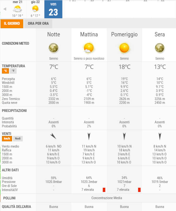 Venerdì 23 Settembre avremo cieli in prevalenza poco nuvolosi per l’intera giornata, non sono previste piogge.