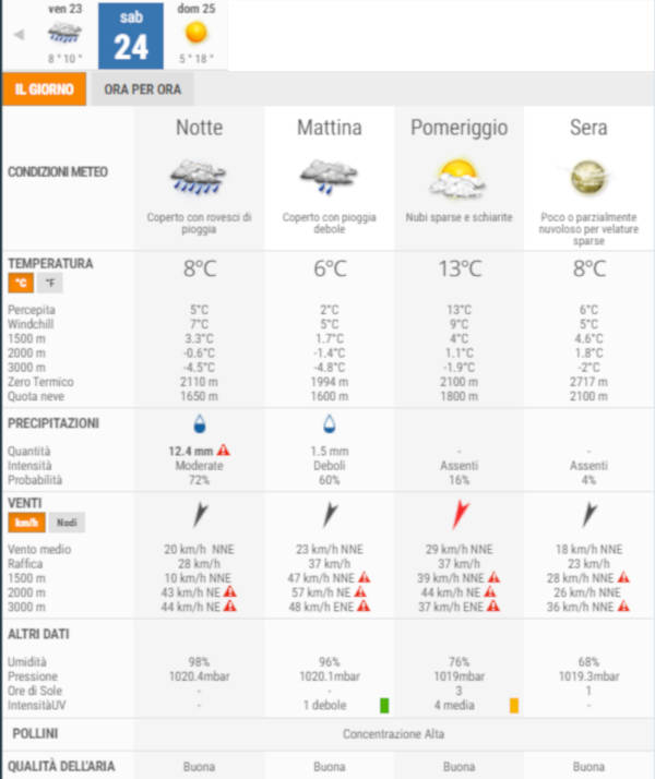 La temperatura massima registrata pare che sarà di 13°C, la minima di 6°C.