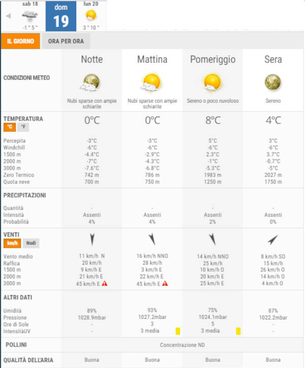 Secondo gli esperti di 3bmeteo, domani, Domenica 19 Dicembre, avremo nubi sparse e schiarite il mattino, cielo sereno o poco nuvoloso il pomeriggio, sereno la sera.