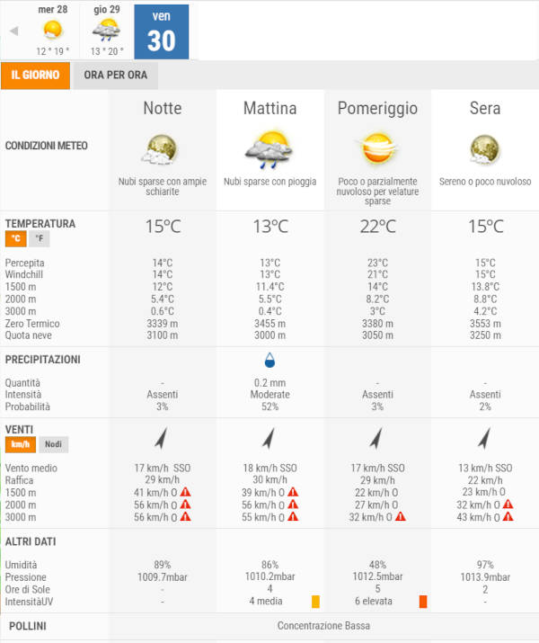 Secondo gli esperti di 3bmeteo, domani, Giovedì 29 Settembre, avremo cieli molto nuvolosi al mattino con deboli piogge.