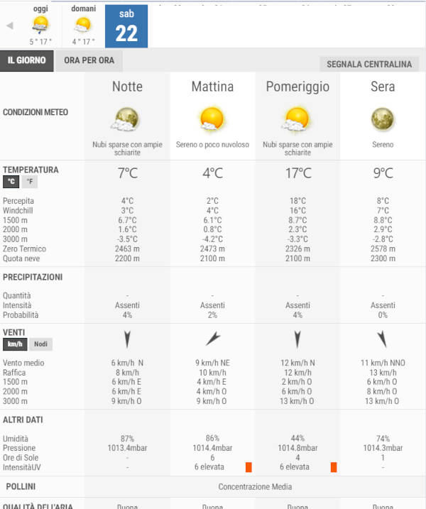 La temperatura massima registrata pare che sarà di 17°C, la minima di 4°C.