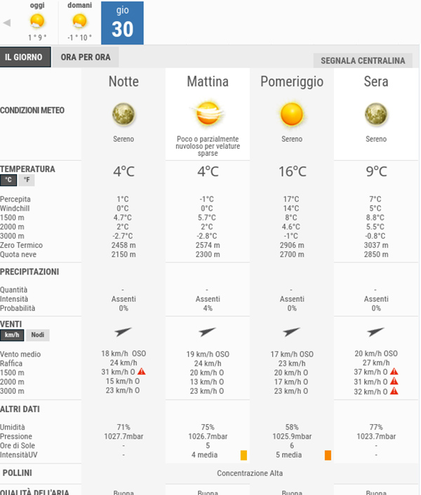 La temperatura massima registrata pare che sarà di 10°C, la minima di -1°C.
