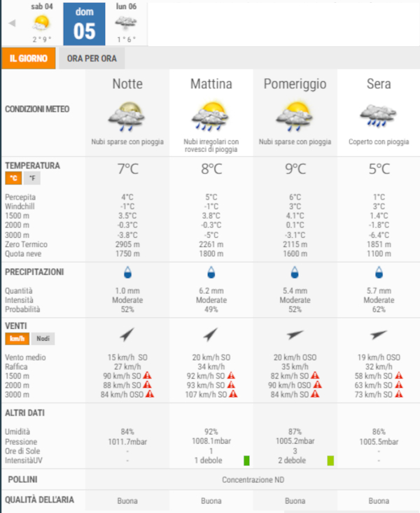 La temperatura massima registrata pare che sarà di 6°C, la minima di 2°C.
