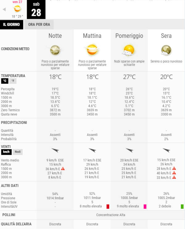 La temperatura massima registrata pare che sarà di 27°C, la minima di 18°C.
