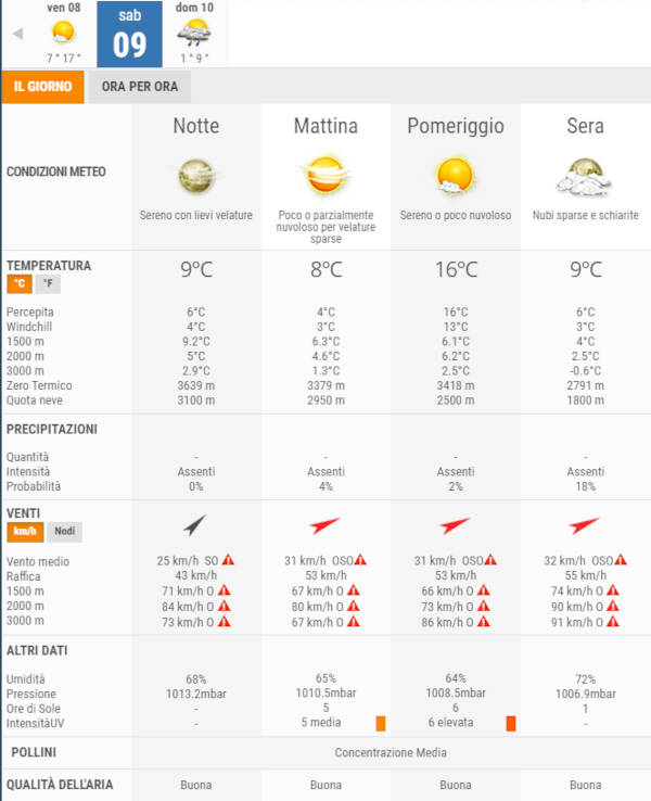 La temperatura massima registrata pare che sarà di 16°C, la minima di 8°C.
