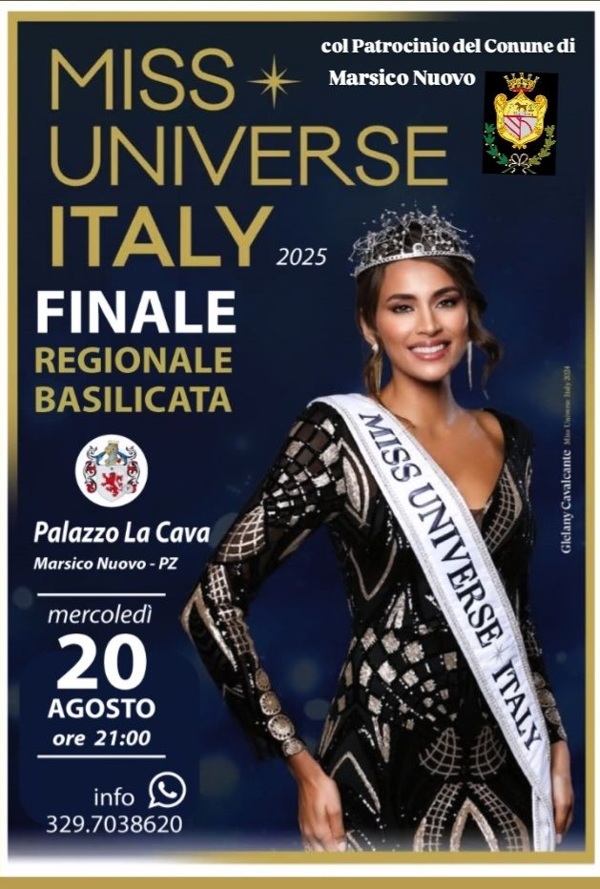 La Finale Regionale Basilicata del prestigioso concorso internazionale di bellezza si terrà nel caratteristico borgo medioevale di Marsico Nuovo Mercoledi 20 Agosto con inizio alle ore 21:00 nel suggestivo scenario di Palazzo La Cava in piazza Umberto I.