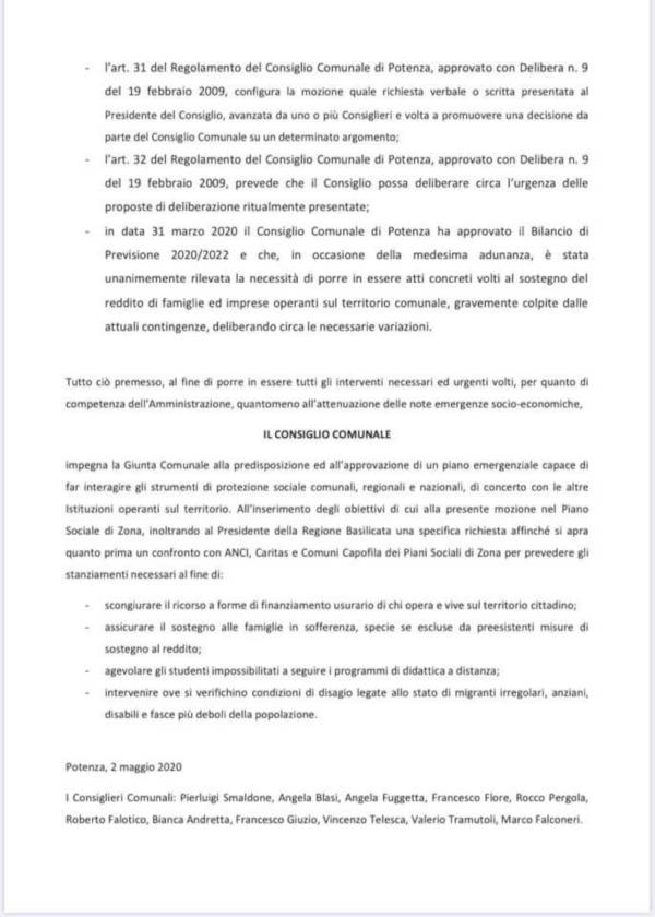 I Consiglieri Comunali di Potenza, Pierluigi Smaldone, Angela Blasi, Angela Fuggetta, Francesco Flore, Rocco Pergola, Roberto Falotico, Bianca Andretta, Vincenzo Telesca, Marco Falconeri, dichiarano:
