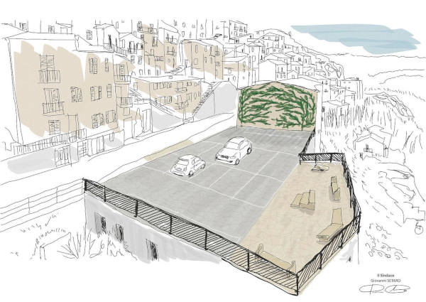La Piazza della Madonna del Carmine si ispira al contesto della rigenerazione urbana e la immaginiamo come un luogo dal quale ammirare il nostro paese dotato di un’area parcheggi a servizio dei residenti e non.
