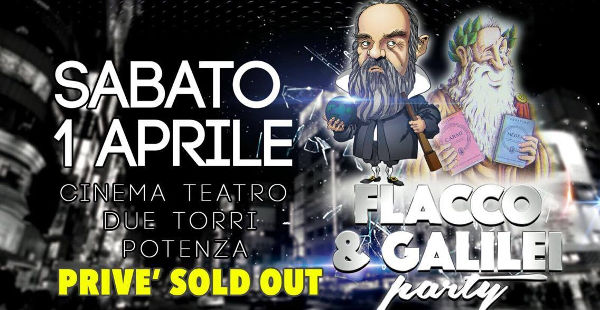 “Sabato 1 Aprile presso il cineteatro Due torri di Potenza a partire dalle ore 22:30 andrà in scena il Flacco&Galilei party”.