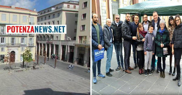 La centralissima Piazza Prefettura a Potenza due giorni fa si è tinta di blu, con il punto di ascolto della Lega Basilicata.