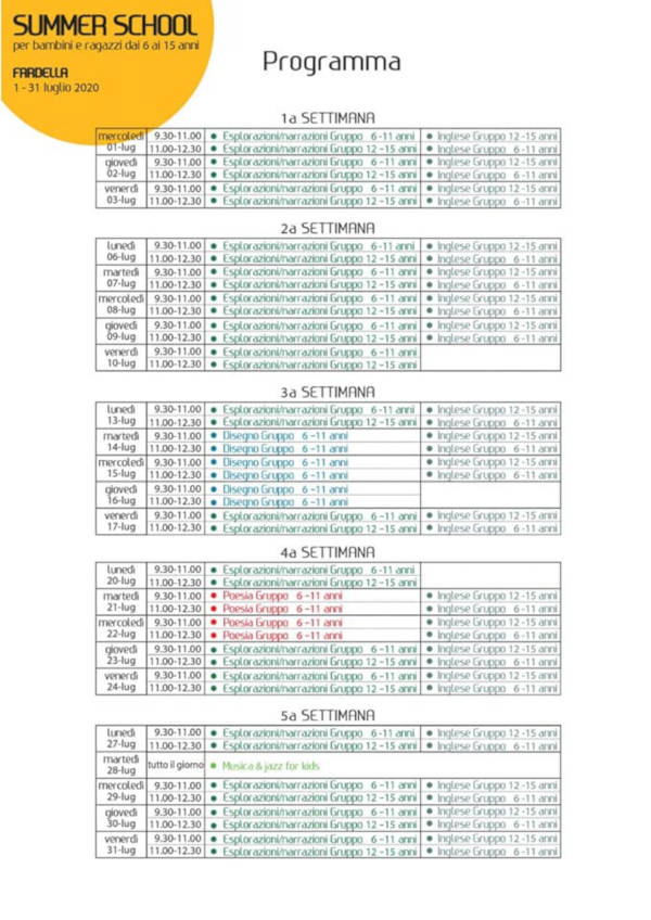 Il 1° Luglio si darà avvio alla Summer School 2020 per bambini e ragazzi nel Comune di Fardella, nel Parco Nazionale del Pollino, un progetto che l’amministrazione comunale ha inserito nel programma della strategia dell’area interna “Mercure Alto Sinni Val Sarmento” nell’ambito della programmazione dei fondi comunitari Fesr, Feasr e Fse 2014-2020.