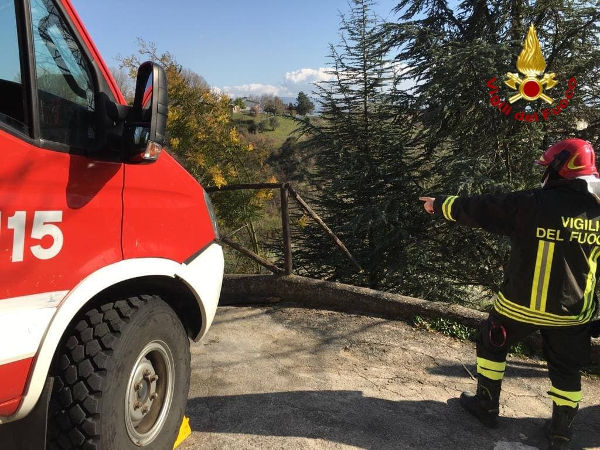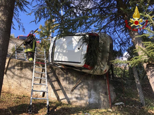 I VV.F. arrivati sul posto hanno trovato una Fiat Panda 4×4 in bilico su un muretto in cemento armato.